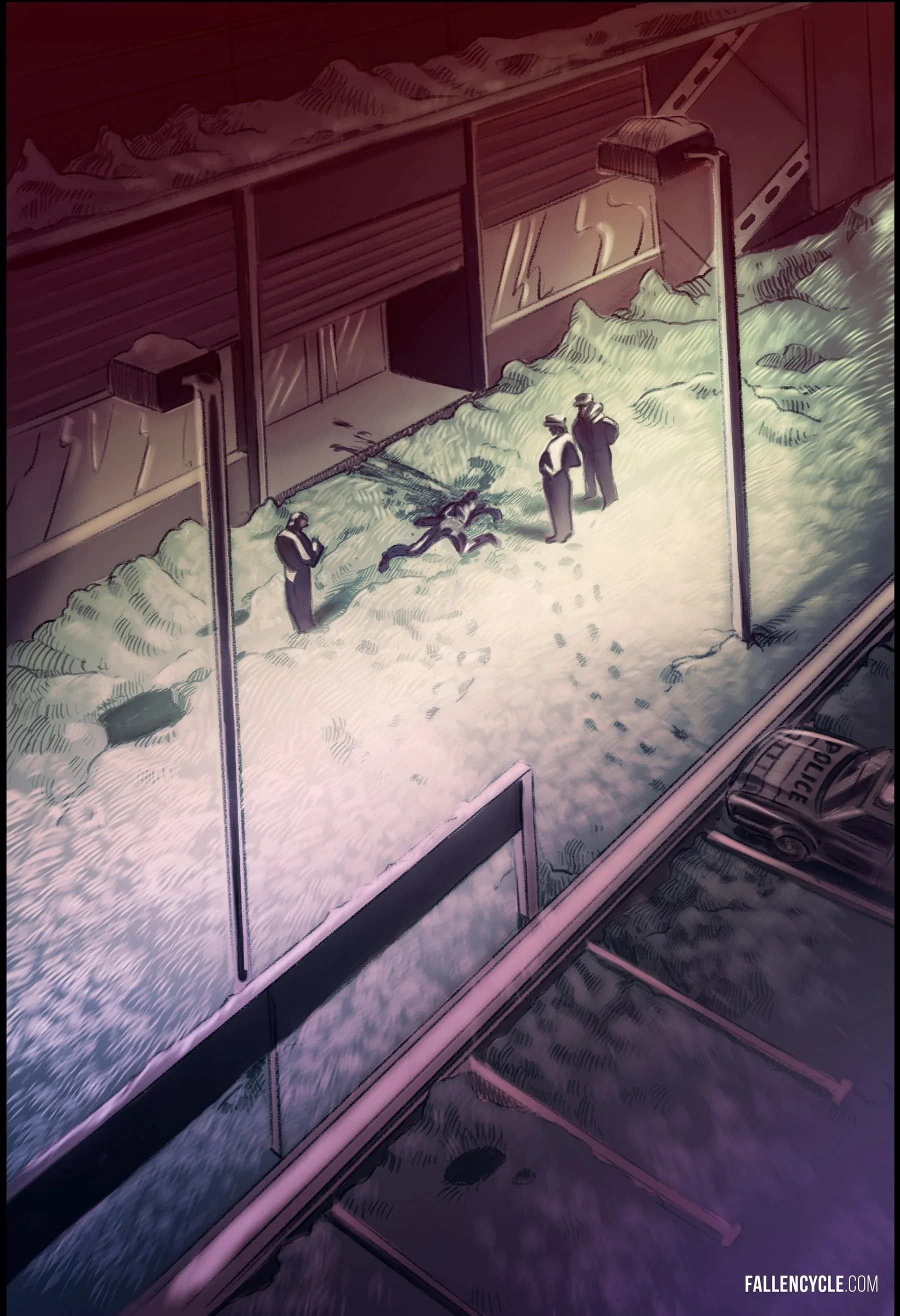 The dream breaks. In this second chapter of The Spring Tree, we leave the inner monologue behind and enter the cold aftermath. A video store clerk is found dead in a snow-choked alley. Detective Trevino and his team arrive to sort the real from the surreal. Blood on the pavement, a name scrawled on a ruined notebook: Nyssa.